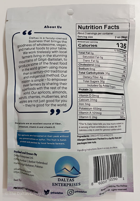 Gilgit-Baltistan is known for growing some of the most delicious apricots in the world. We sun-dry our apricots then pack them right up for you to eat and enjoy. Our apricots are not rehydrated or sulfured. This means less water and more apricot for your money plus a delicious, natural apricot flavor and aroma rarely found anywhere else.